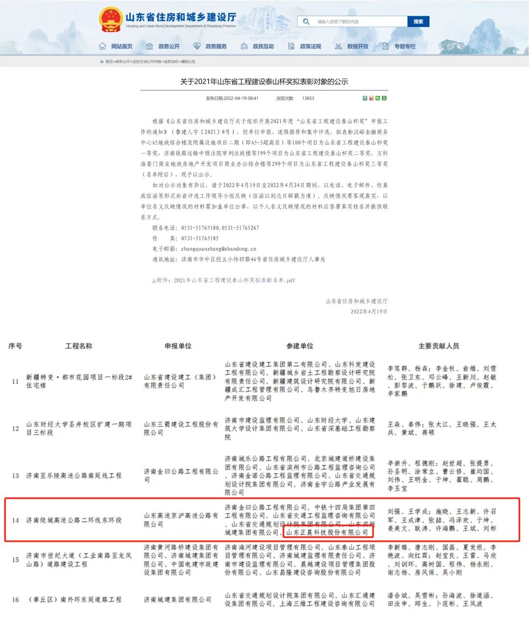 近日,赢博app官方在线入口参建的“济南绕城高速公路二环线东环段项目”荣获2021年度山东省工程建设泰山杯奖!