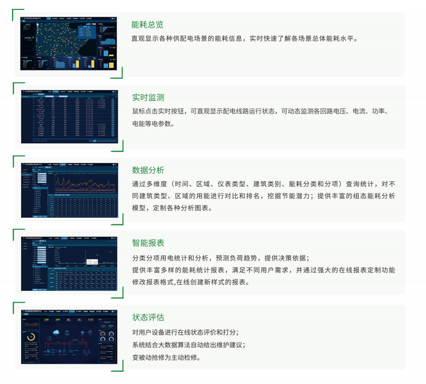 智慧电力监控系统是针对0.4kV-10kV的配电室开发的综合监控系统,可对中低压配电柜、直流屏、微机保护装置、变压器、UPS电源、电动机组等多种变配电设备进行全方位的监控,为配电系统的实时数据采集、开关状态检测及远程控制提供了基础平台,协助运维人员快速故障分析、定位和排除问题,帮助企业提高供电可靠性、降低运营成本、提高生产效率,加快供配电过程中异常的反应速度。系统适用于数据中心、大型公建、大型医院、商业广场、石油化工、机场轨交等配电室的电力监控。